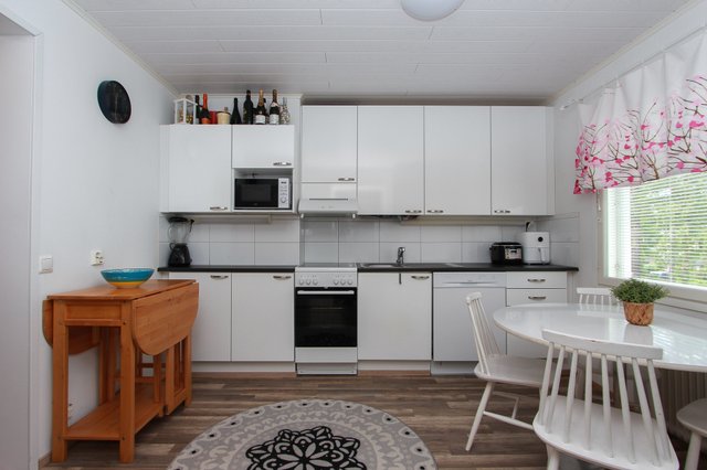 - Kaapistot, astianpesukone, jääkaappi pakastin yhdistelmä, keraaminen liesi/kiertoilmauuni ja liesituuletin filtterillä. Remontoitu v. 2017-2018.