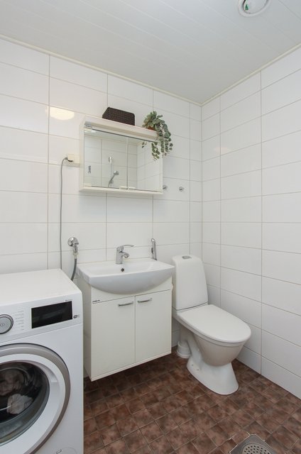 - Suihku, suihkuseinä, wc-istuin, pesuallas, peilikaappi, allaskaappi, bidee, pesukoneliitäntä ja lattialämmitys. Remontoitu v. 2017.2018,