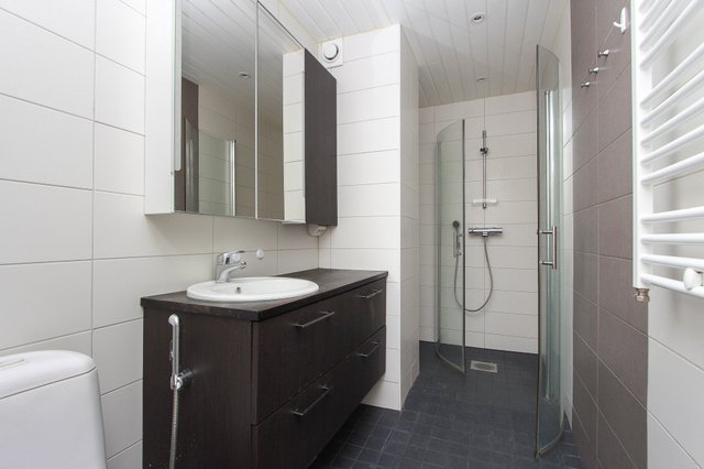 - Suihku, suihkun taitto-ovet, wc-istuin, pesuallas, allas- ja peilikaapit, bidee, pyyhekuivain ja lattialämmitys. Kylpyhuone remontoitu vuonna 2013-1014.