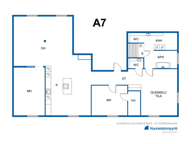 - Läpitalon päätyhuoneisto, näkymät kolmeen suuntaan.