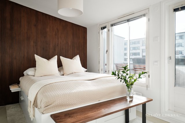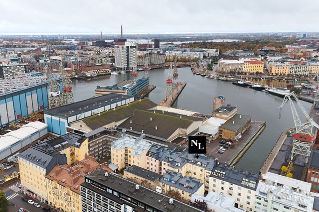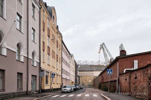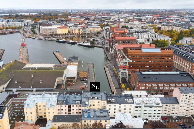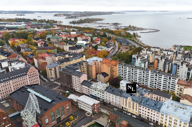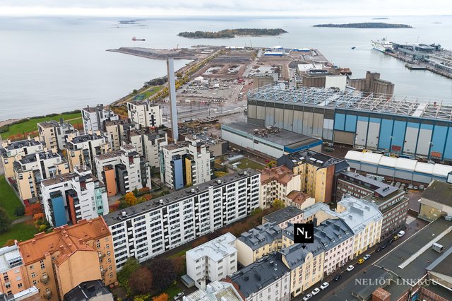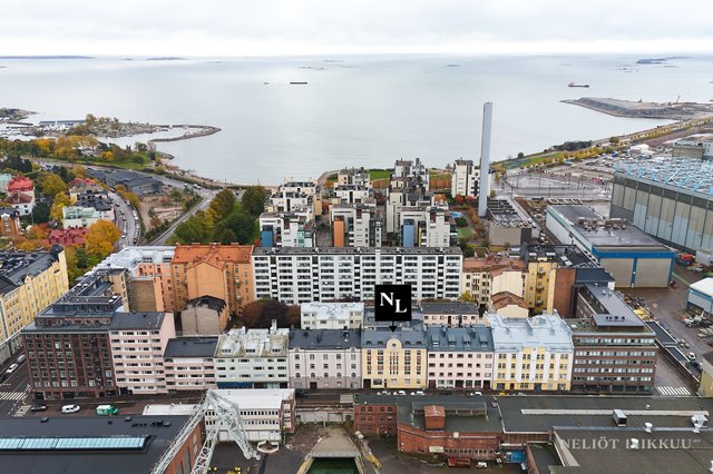 Sijainti tarjoaa ainutlaatuisen yhdistelmän rauhaa ja urbaania elämää. Ylimmän kerroksen, sisäpihalle suuntautuvien ikkunoiden ja tilavan parvekkeen ansiosta täällä koet rauhaa keskellä kaupunkia. Kätevästi kulman takaa löytyy kuitenkin raitiovaunupysäkit, Telakkarannan tunnelmalliset ravintolat ja muutaman minuutin kävelymatkan päässä odottava merenranta.