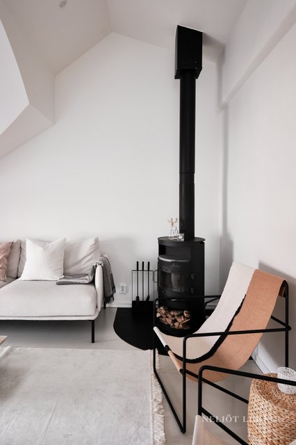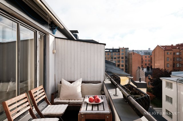 Etelään avautuva parveke kutsuu nauttimaan auringonpaisteesta kesäisin, kun taas olohuoneen takka luo lämpöä ja tunnelmaa talvi-iltoihin. Ullakkoasunnoille tyypillisesti huoneiston lattiapinta-alaa on enemmän kuin virallisia neliöitä, ja korkea huonekorkeus tekee kodista avaran ja persoonallisen.