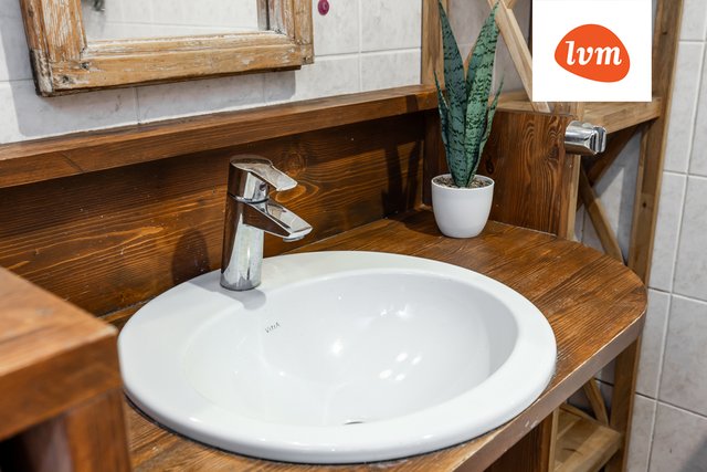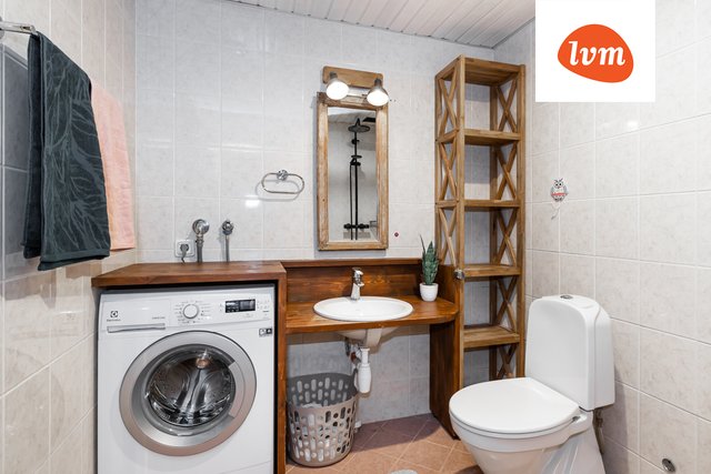 - WC-istuin, suihku, pesuallas, allaskaappi, peili, pesukoneliitäntä, lattialämmitys, ja pesukone