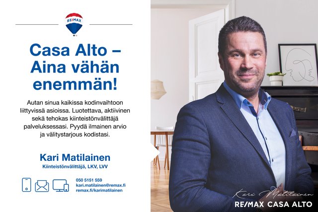 Tätä asuntoa myy Kari Matilainen, Kiinteistönvälittäjä LKV, LVV / Uudenmaan Asuntomyynti Oy