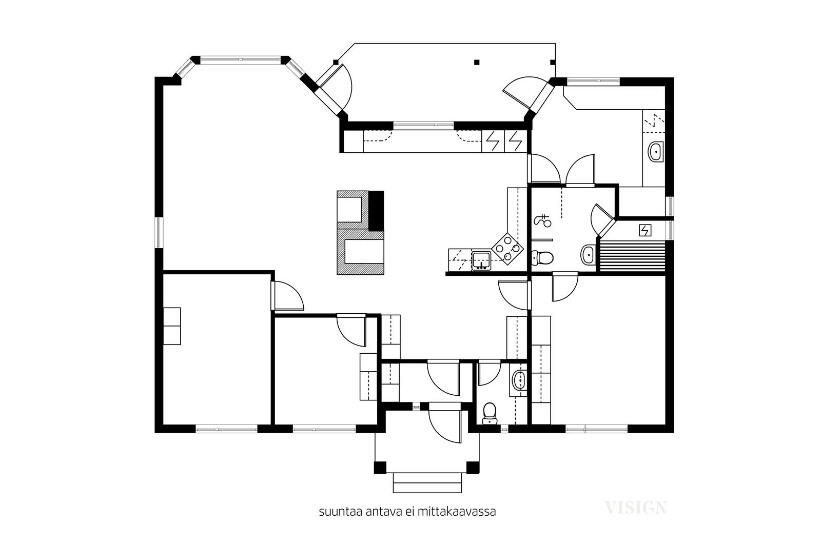 - Suihku, peili, lattialämmitys, wc-istuin, ja kiinteät valaisimet