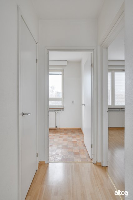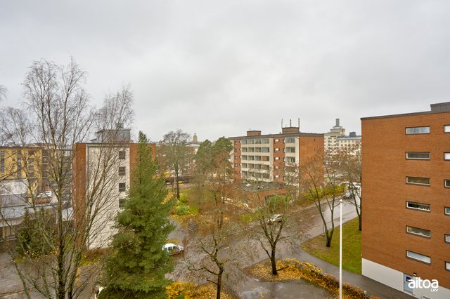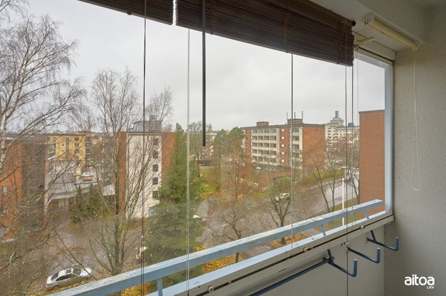 Valoisa läpitalon kaksio odottaa uutta omistajaa. Ylimmän kerroksen 6/6 ,hissitalon asunto tarjoaa upeat näkymät ja rauhallisen ympäristön. Asunnon tilava olohuone ja lasitettu parveke luovat viihtyisän kokonaisuuden.