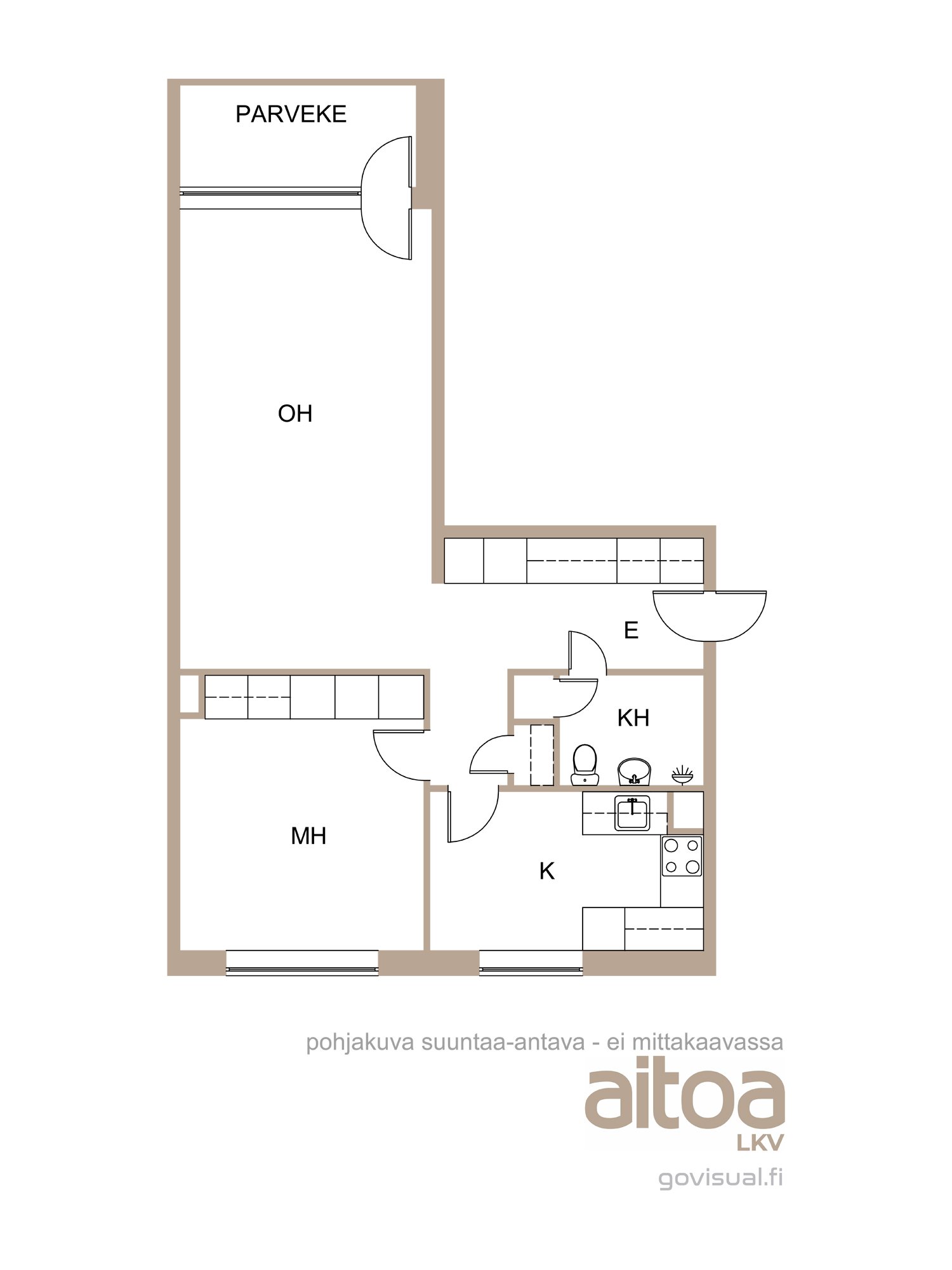 Keittiö on käytännöllinen, makuuhuoneessa on runsaasti kaappitilaa ja olohuoneeseen on asennettu ilmalämpöpumppu joka takaa kesällä mukavat viileät oltavat. Kylpyhuoneessa on kaikki tarvittava, mukaan lukien pesukoneliitäntä. Taloyhtiöstä löytyy myös sauna sekä pesutupa.