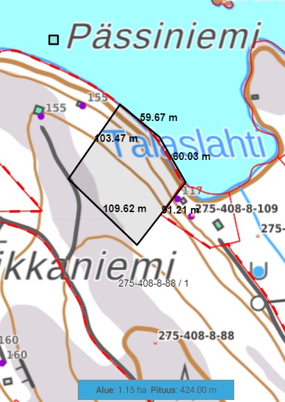 - Hyväpuustoinen männikkökangastontti, ilmansuunta koilliseen. Kiinteistön pinta-alan ylittäessä 5000 m², on kunnalla etuosto-oikeus. Määräala saa osuuden yhteisiin vesialueisiin, pinta-alaan suhteutettuna.