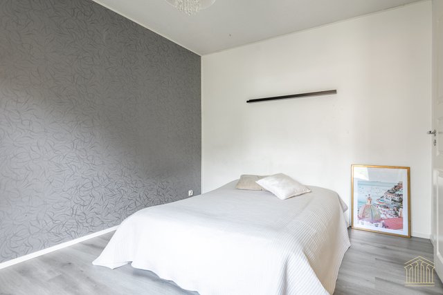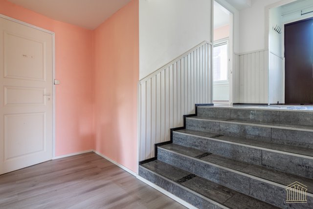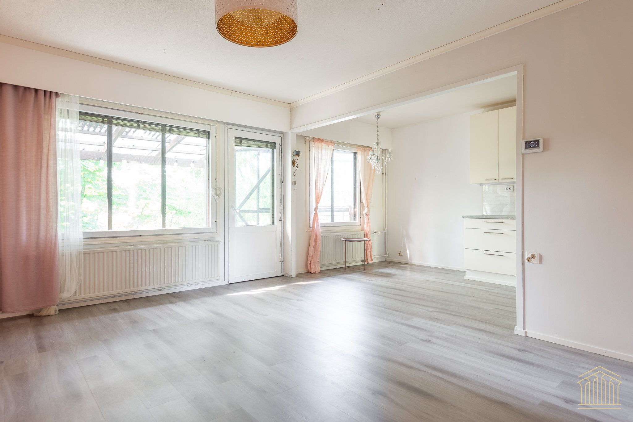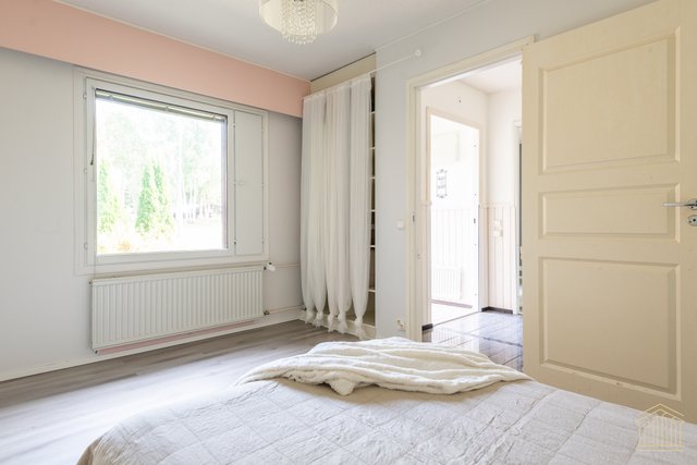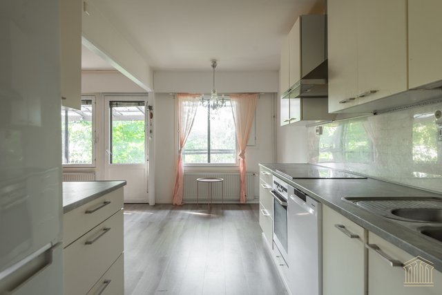 Vastaavia rivitalokohteita samalla pohjaratkaisulla on harvoin tarjolla. Sisäänastuessa makuuhuoneet aukeavat molemmin puolin ja edessä avautuu muutaman askelman alapuolella avara olohuoneen ja keittiön yhtenäinen tila, jossa ruokailuryhmälle on suunniteltu selkeä paikka. Vuonna 2020 uusittu keittiö tarjoaa hyvin työskentelytilaa ja väliseinän ansiosta myös omaa rauhaa. Tilava kylpyhuone ja oma sauna takaavat viihtyvyyden. Kuivissa tiloissa on uusittu nykyaikainen vinyylilattia, joka on kestävä ja jalalle miellyttävä.