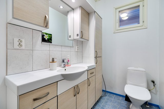Kylpyhuoneessa on lattialämmity ja sen lisäksi talossa on kaksi erillistä wc:tä, mikä lisää arjen sujuvuutta. Oma sauna tarjoaa mahdollisuuden rentoutua kiireisen päivän päätteeksi.