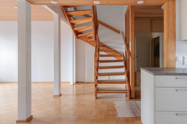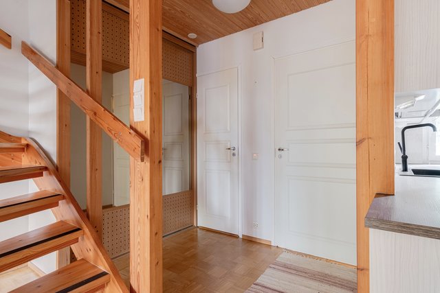 Koti jakautuu kahteen kerrokseen. Alakerrassa sijaitsevat avara ja valoisa olohuone, moderni keittiö sekä wc. Keittiö on uusittu vuonna 2021, ja se on suunniteltu vastaamaan nykyajan tarpeita – laadukkaat kodinkoneet, runsaasti säilytystilaa sekä yhtenäinen ilme tekevät siitä todellisen kodin sydämen. Olohuoneesta on käynti omalle suojaisalle terassille, jossa on mukava nauttia kahvihetkistä ja kesäilloista.