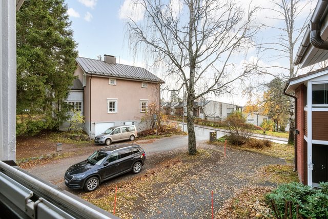 Yläkerrassa sijaitsevat makuuhuoneet, kylpyhuone ja saunaosasto. Tilava sauna on remontoitu vuonna 2020, ja käynti suoraan saunasta vilvoitteluparvekkeelle tekee löylyhetkistä nautinnon. Talon toiselle parvekkeelle on käynti makuuhuoneesta, mikä tuo asuntoon luonnonvaloa ja mahdollisuuksia ulkoilmaan.