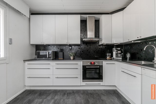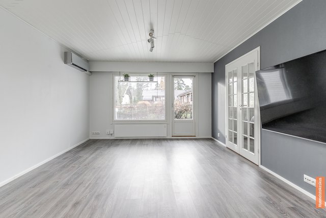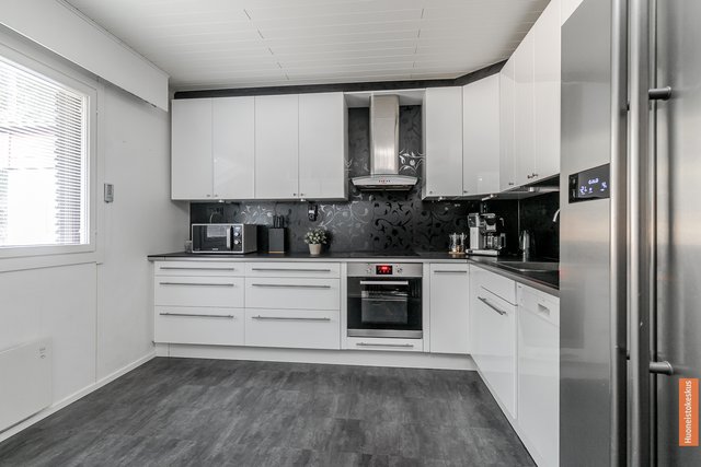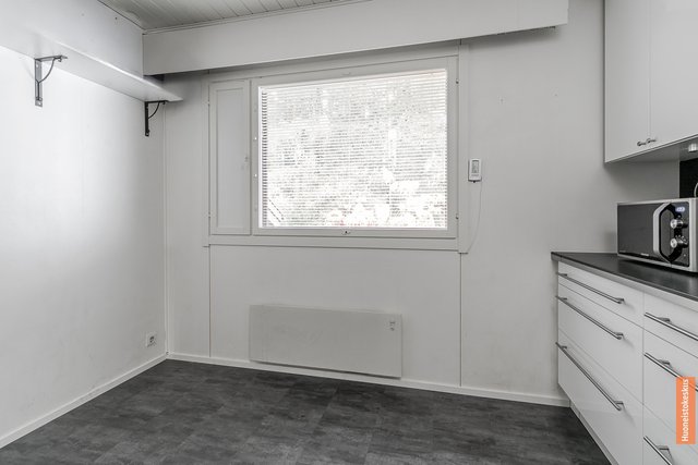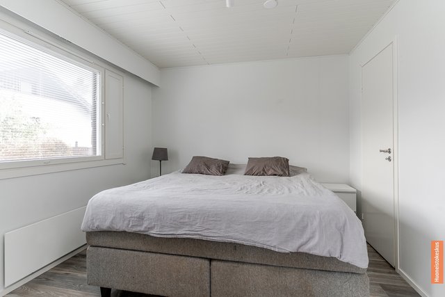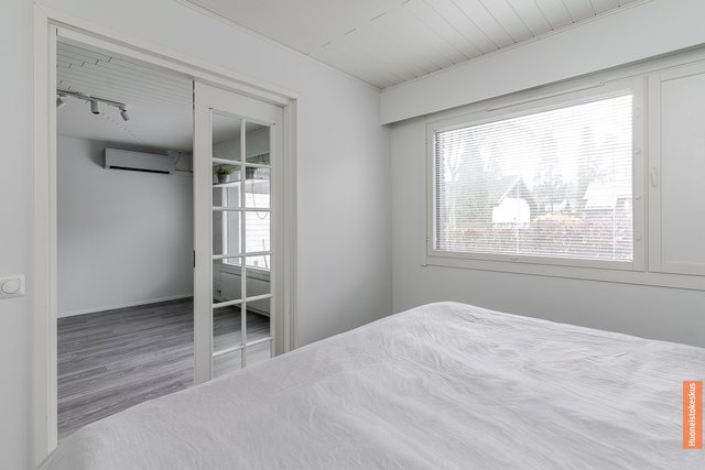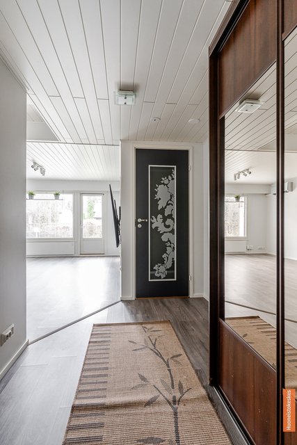 Tämä koti on avara ja valoisa. Yhtenäiset, juuri uusitut laminaattilattiat tuovat tiloihin modernin ilmeen. Vuonna 2016 uusittu keittiö sekä pesutilat ovat edelleen siistissä kunnossa ja hyvin varustellut. Tilavasta olohuoneesta on kauniit pariovet makuuhuoneeseen sekä kulku omalle, aidatulle ja suojaisalle pihalle. Erillinen wc, vaatehuone sekä oma sauna tuovat lisämukavuutta asumiseen. Asuntoon olisi mahdollista tehdä lisätilaa käyttöullakolle, jota ei ole levytetty eikä ole ollut käytössä tähänastisilla asukkailla.