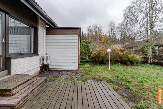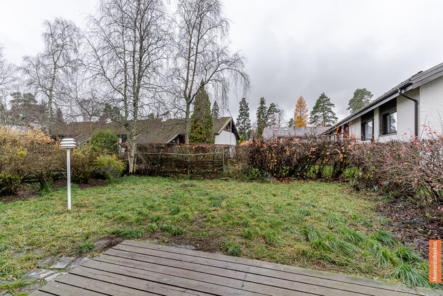 - Iso, suojaisa ja aidattu piha, joka kuuluu yhtiöjärjestyksen mukaan asunnon hallintaan. Päätyasunto.