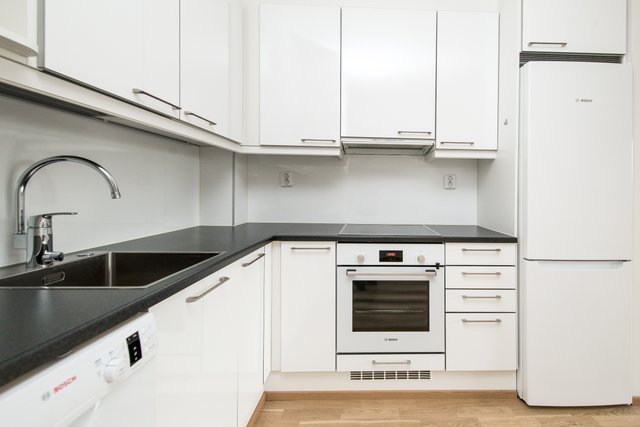 - Jääkaappipakastin, uuni, liesituuletin, liesi, ja astianpesukone