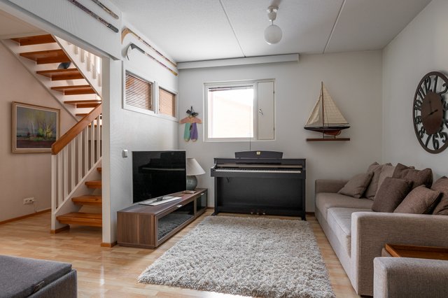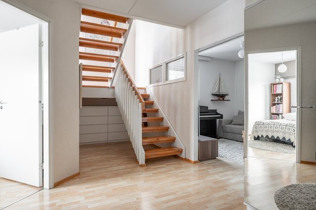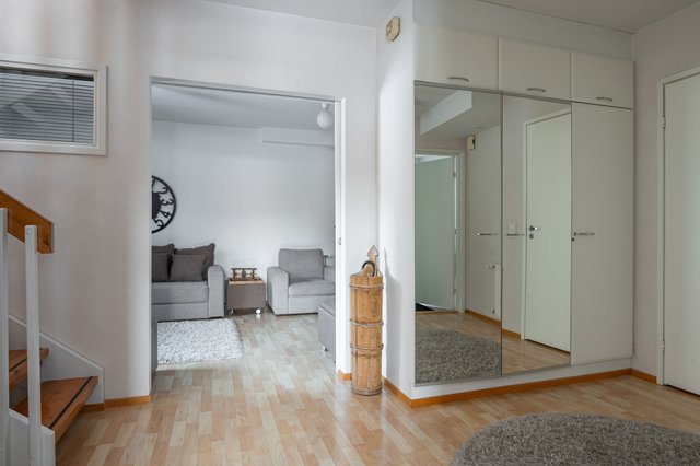 Tervetuloa Myllymäentielle, täällä 1997 rakennetun rivitalon päätyasunnossa valo tulvii sisään ja avarat tilat kutsuvat viihtymään. Kaunis ja huolella suunniteltu rivitalokoti yhdistää tyylikkyyden, toimivan arjen, modernit ratkaisut ja rauhallisen suojaisen sijainnin. Kaksikerroksinen koti palvelee erinomaisesti erilaisia ja muuttuvia elämäntilanteita sekä tuo väljyyttä ja monia sisustusmahdollisuuksia niin arkeen kuin yhdessäoloon.