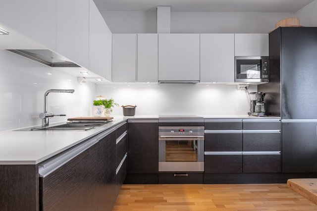 - Jääkaappipakastin, erillisuuni, liesi, liesituuletin, mikroaaltouuni, ja astianpesukone