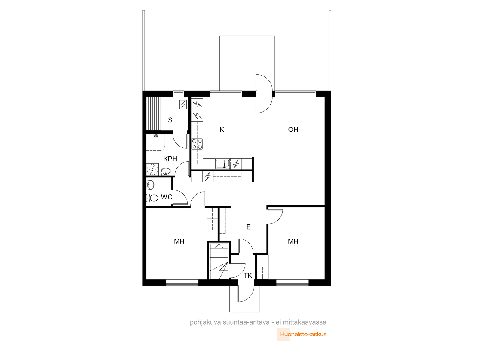 - Kaapistot, side by side pakastin/jääviileäkaappi, liesi keraaminen kiertoilmauunilla, liesituuletin, astianpesukone, koneellinen ilmanvaihto liesituulettimen yhteydessä.