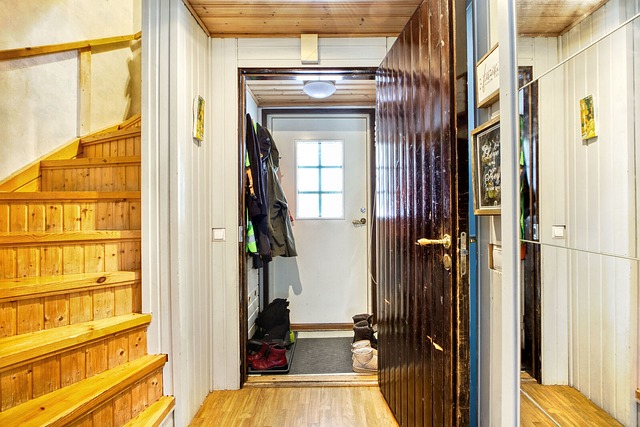- Tuulikaapin ja eteisen lattiassa muovimatto, seinät maalattu ja katot paneloitu.
