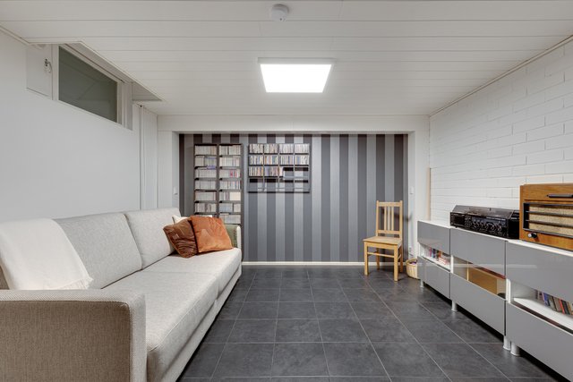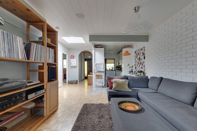 Sen lisäksi on pesutilat ja sauna, askarteluhuone ja lämmin autotalli (yhteensä 47 m2). Yhtiö on valmistunut 1977 ja sen lämmitysmuodoksi on valittu maalämpö, mikä tuo asumiseen ekologisuutta ja kustannustehokkuutta.