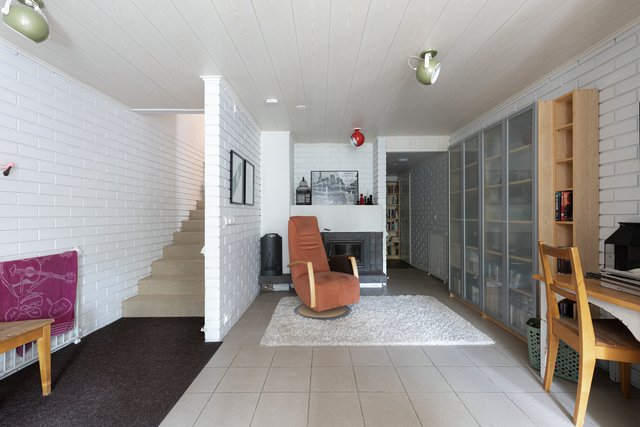 - Takkahuoneen seinät tiiltä. laattalattia. Takkasydän. Askarteluhuoneen lattia laattaa, seinät maalatut.
