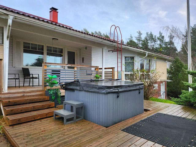 Vesikattoa korjattu 2025, keittiön, olohuoneen portaat (2kpl) uusittu 2024, olohuoneen ja eteistilojen lattioihin uusittu laminaatit 2022-2023, terassi tehty 2023, poreallas 2023, kylpyhuoneeseen laatat vanhojen päälle ja vesieristeet 2023, Kiuas uusittu 2023, vessojen seinät maalattu 2023, wc-istuimet uusittu 2023, eteistilojen ja kuistin seinät maalattu 2022.