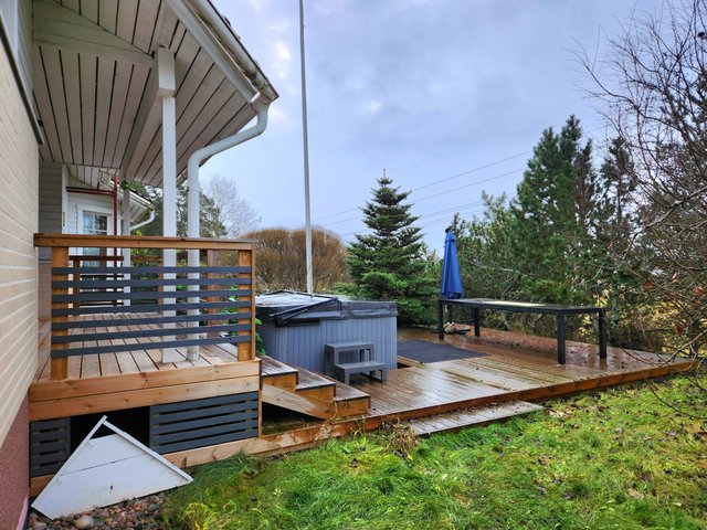 Myrskylinnantie 20:ssä sijaitseva omakotitalo tarjoaa tilaa ja mukavuutta kauniissa Hadvalan kaupunginosassa, Kaarinassa. Tämä vuonna 1999 valmistunut talo on kokenut hyviä päivityksiä vuosina 2022-2024 kuten takapihan terassin ja porealtaan sekä uusitun kylpyhuone laatoituksen, saunan kiukaan, wc istuimet, olohuoneen, keittiön ja eteisen lattiapinnat.