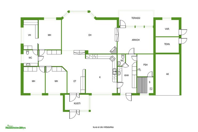 - Pinta-ala ei ole tarkistusmitattu ja todellinen pinta-ala voi olla suurempi tai pienempi, kuin ilmoitettu