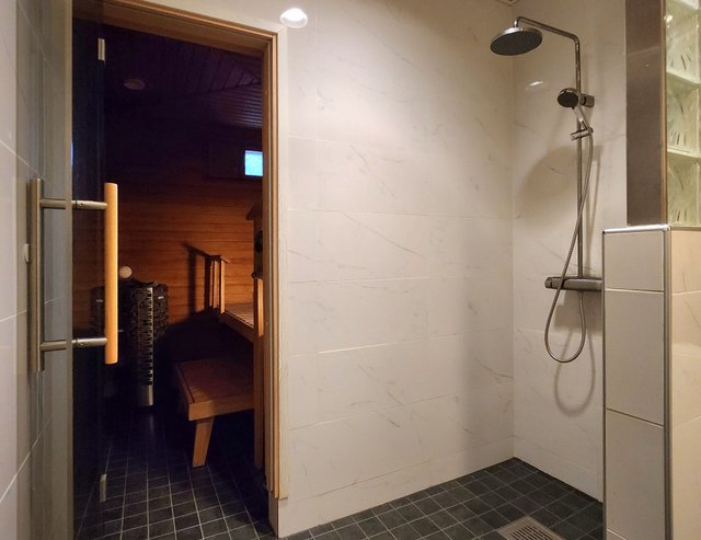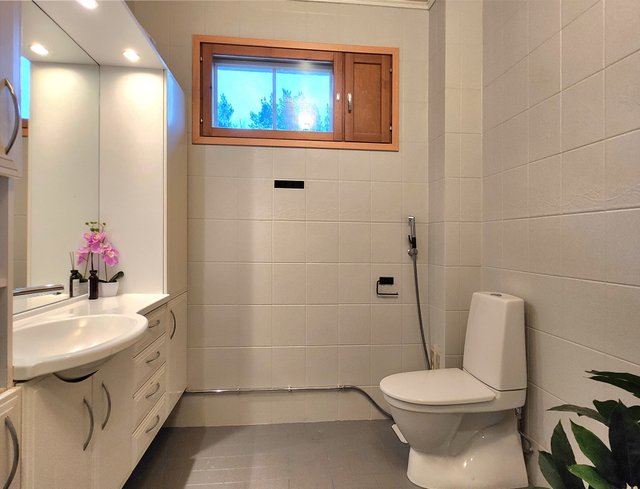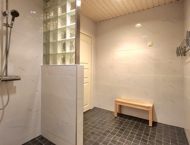 - Suihku, pesuallas, lattialämmitys, ja peili