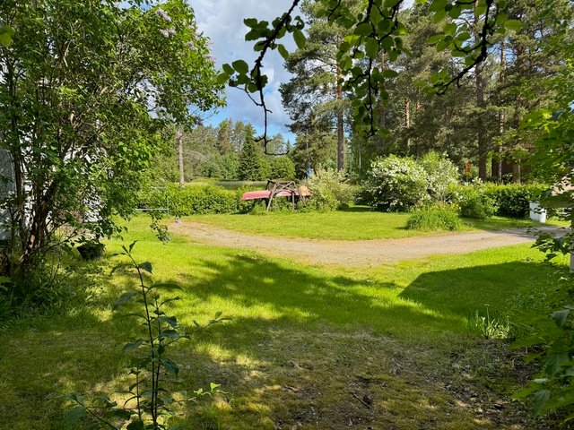 - Tontin etupiha tasamaata, takapiha loivasti rinteessä.