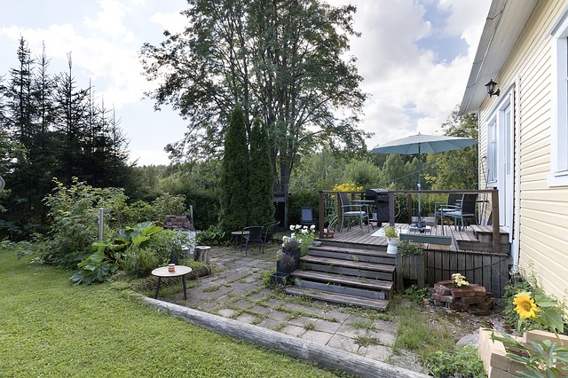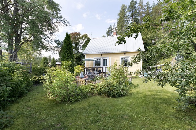 - Vanha rinne puutarhatontti, jolla pensaita ja hedelmäpuita.