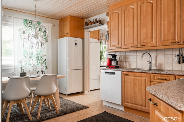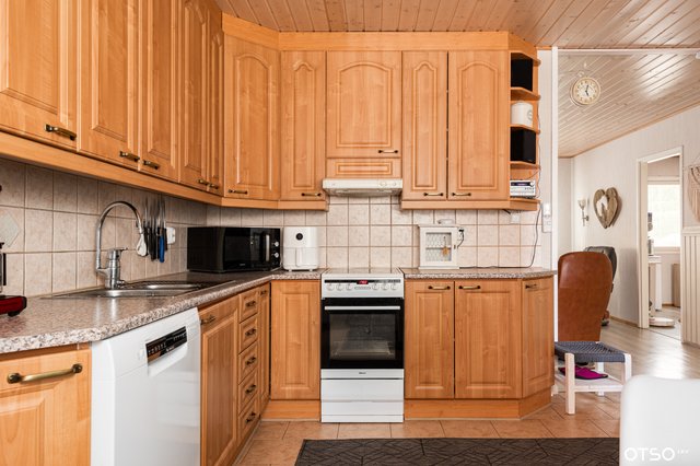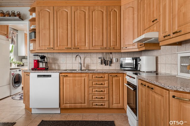 - Jääkaappipakastin, liesi, liesituuletin, ja astianpesukone
