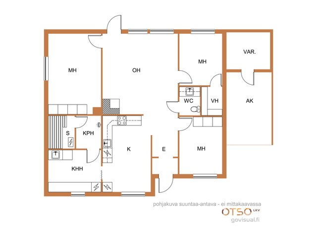 - Pinta-ala ei ole tarkistusmitattu ja todellinen pinta-ala voi olla suurempi tai pienempi, kuin ilmoitettu