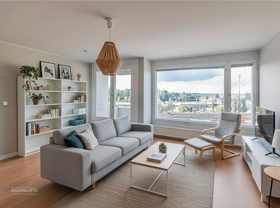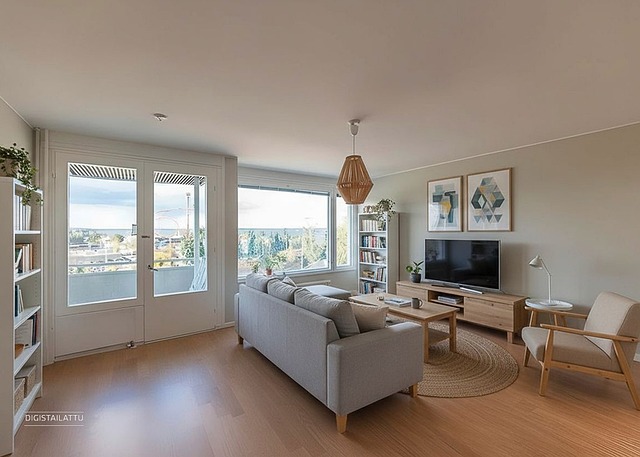 Amurin sydämessä odottaa kaunis koti, joka tarjoaa harvinaisen paljon – tilaa, valoa ja näkymiä, joihin ei kyllästy koskaan. Tämä 87,5 m²:n läpitalon päätyasunto sijaitsee hissitalon viidennessä kerroksessa, josta avautuvat erityisen upeat maisemat. Asunnon ikkunat suuntautuvat kolmeen eri ilmansuuntaan: pohjoiseen, etelään ja itään. Jokainen huone kylpee luonnonvalossa, ja olohuoneen sekä keittiön suurista ikkunoista siintävät Näsinneula, Näsijärvi ja Särkänniemi.