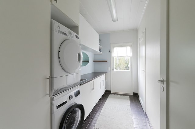 - Pesukoneliitäntä, lattialämmitys, pyykkikaapit, ja pöytätaso