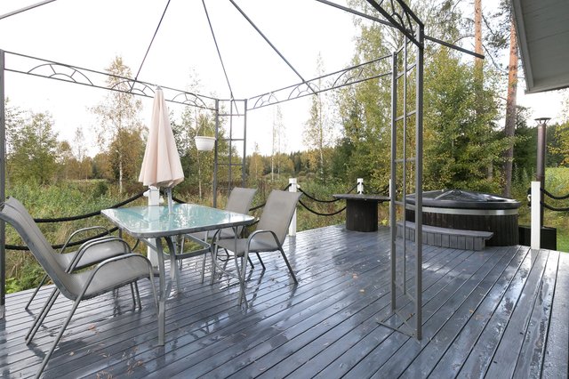 - sälekaihtimet, kiinteät valaisimet, keskuspölynimuri, matontamppausteline, pyykinkuivausteline, jätesäiliö, komposti, palju, istutukset, kasvihuone, akkuvarmenteinen palohälytinkeskus