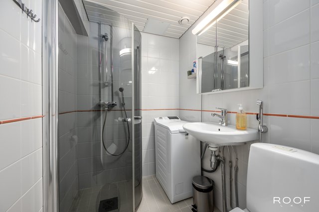 - Varustus: Suihku, Suihkuseinä, Wc istuin, Pesukoneliitäntä, Hana, Allas, Peilikaappi, Lattialämmitys Seinämateriaali: Laatta Lattiamateriaali: Laatta