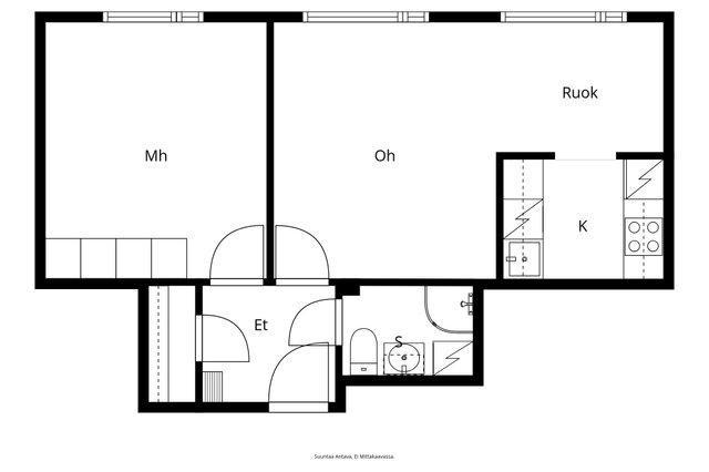 - Varustus: Induktioliesi, Liesituuletin, Uuni, Hana, Kaapisto, Allas, Astianpesukone, Jääkaappipakastin Seinämateriaali: Laatta, Maali Lattiamateriaali: Vinyylilankku