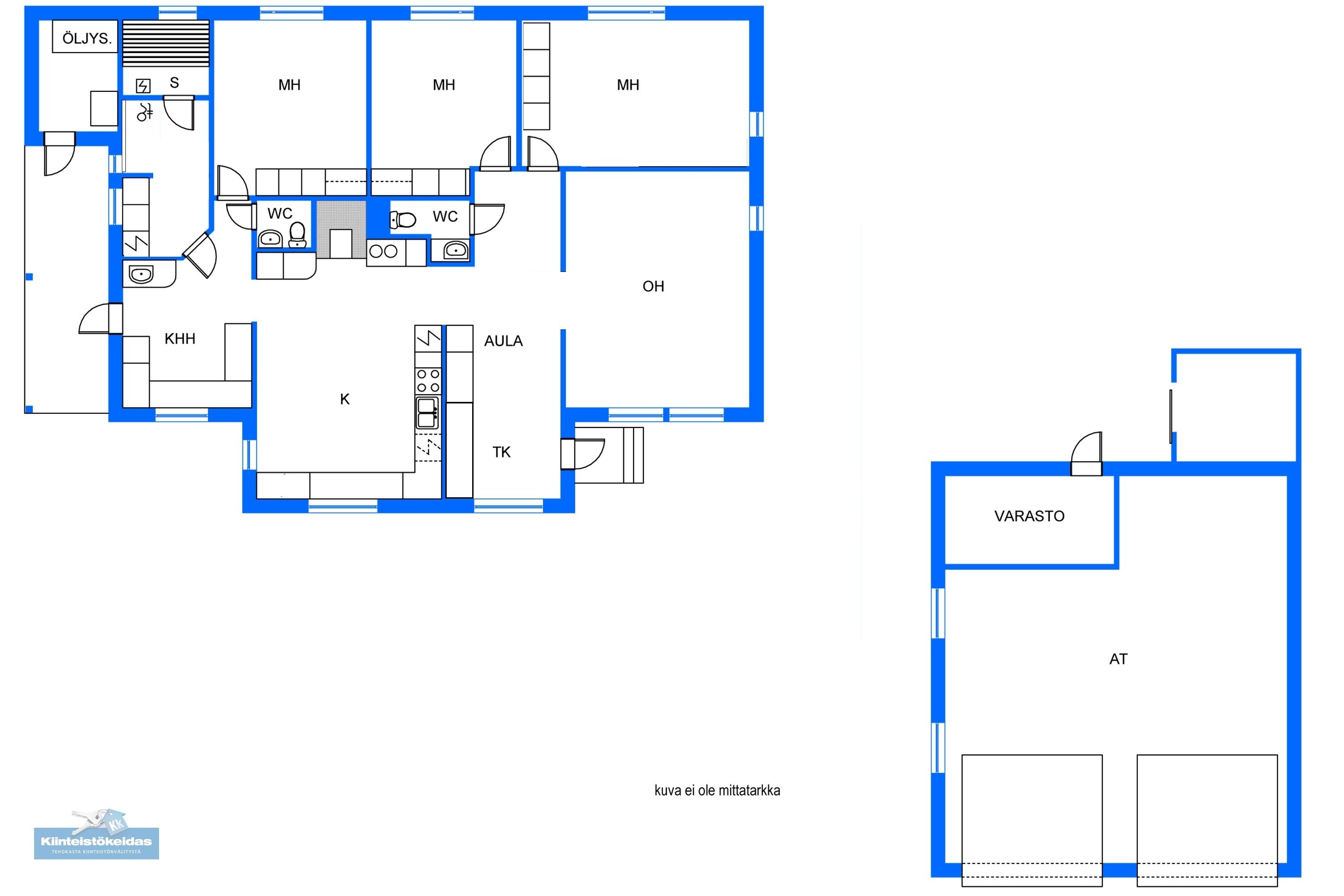 - Pinta-ala ei ole tarkistusmitattu ja todellinen pinta-ala voi olla suurempi tai pienempi, kuin ilmoitettu