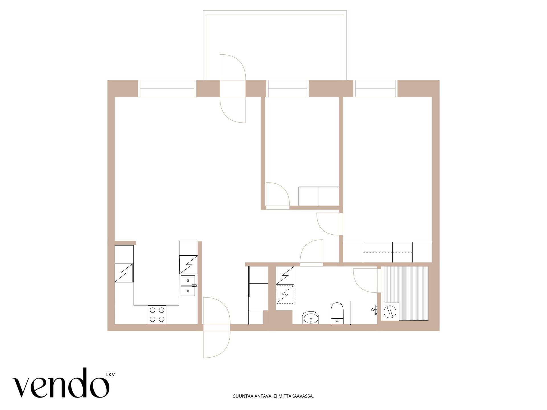 3h+k+sauna+lasitettu parveke