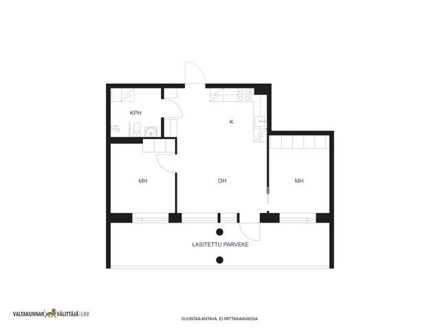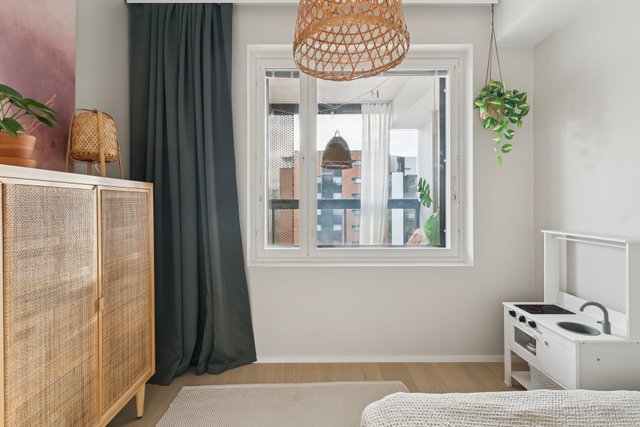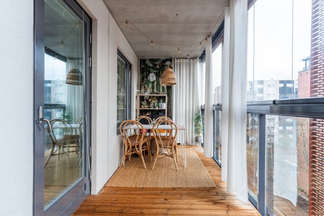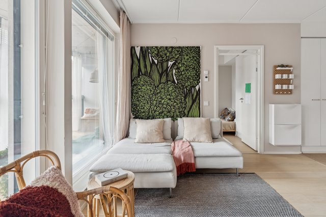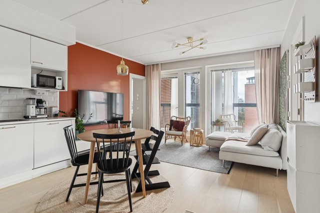 Luonnonvaloa tulvii ikkunoista luoden kodin, jossa valo ja avaruus kulkevat käsi kädessä. Toimiva pohjaratkaisu tekee arjesta sujuvaa ja tilankäytöstä vaivatonta. Keittiö ja olohuone muodostavat yhtenäisen, kodikkaan oleskelukokonaisuuden, jossa on helppo viihtyä ja jonka sisustat joustavasti omien toiveidesi mukaan. Keittiössä on hyvin säilytystilaa, ja integroidut kodinkoneet viimeistelevät siistin, yhtenäisen ilmeen. Asunnossa on kaksi fiksun kokoista makuuhuonetta, eikä säilytystilasta ole puutetta kaapistojen ansiosta. Kylpyhuoneeseen saa myös hyvin mahdutettua oman pyykkihuollon. Huoneiston ehdoton helmi on koko huoneiston levyinen 20 m²:n lasitettu parveke.