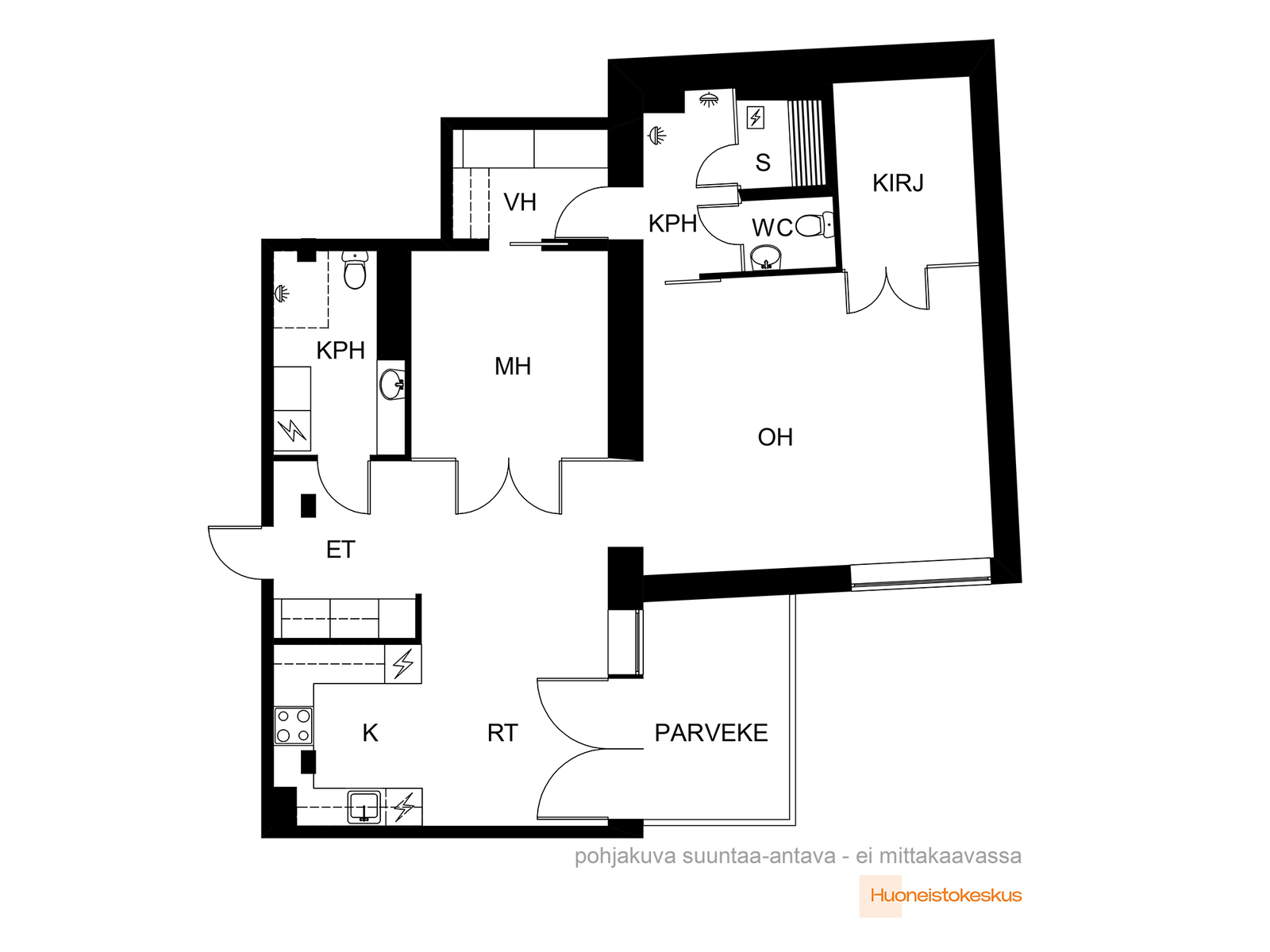 Oh, k, ruokailutila, 2 mt, s, kph, khh/wc, vh, p
