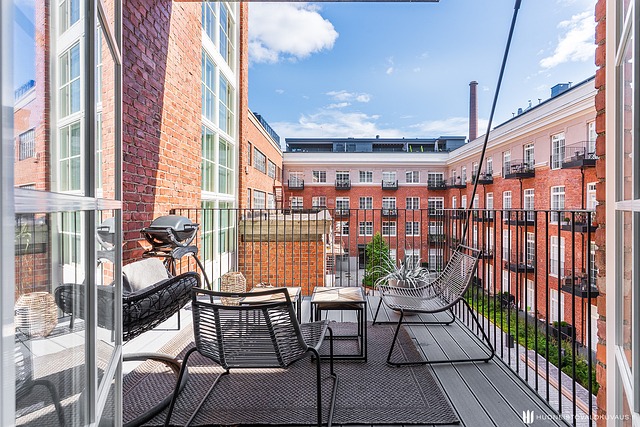 Tarjolla ainutlaatuinen, tunnelmalliselle sisäpihalle avautuva, aito loft-asunto isolla parvekkeella idän ja etelän suuntaan.