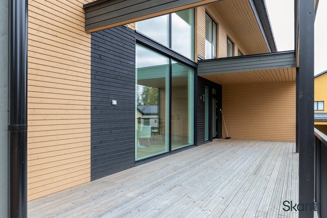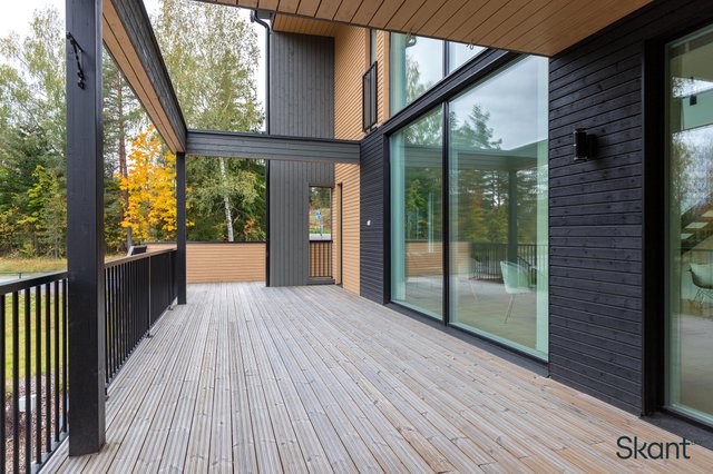 Lämmityksestä vastaa energiatehokas poistoilmalämpöpumppu vesikiertoisella lattialämmityksellä. Yksi kodin parhaita puolia on etelään avautuva osittain katettu terassialue, joka tarjoaa tilavat puitteet yhdessäoloon.