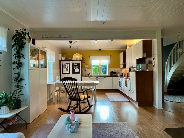 Kohde on 2008 rakennettu 1,5-kerroksinen omakotitalo, yläkerran huoneet rakennettu 2013. Talopaketti on Muurametaloilta, yläkerran rakensi Domesta Oy. Talossa yhteensä 5 makuuhuonetta (alakerrassa 2, yläkerrassa 3). Tilava tupakeittiö, jossa Puustellin kalusteet ja Uuniseppien takkaleivinuuni. Wc:t alakerrassa ja yläkerrassa. Alakerrassa kodinhoitohuone, kylpyhuone ja sauna.