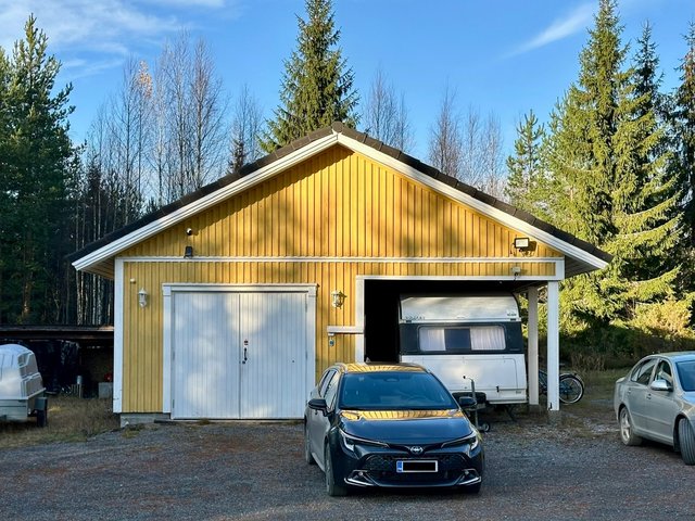 - V.2010 rakennettu autotalli-/katos/varasto kokonaisala 74 m2. Lisäksi tynnyrisauna, leikkimökki ja puukatos.