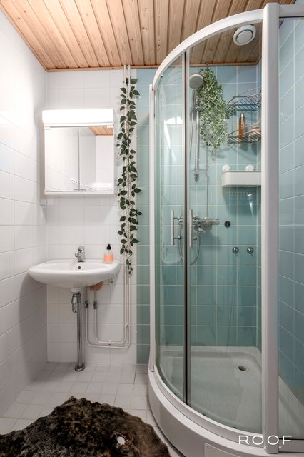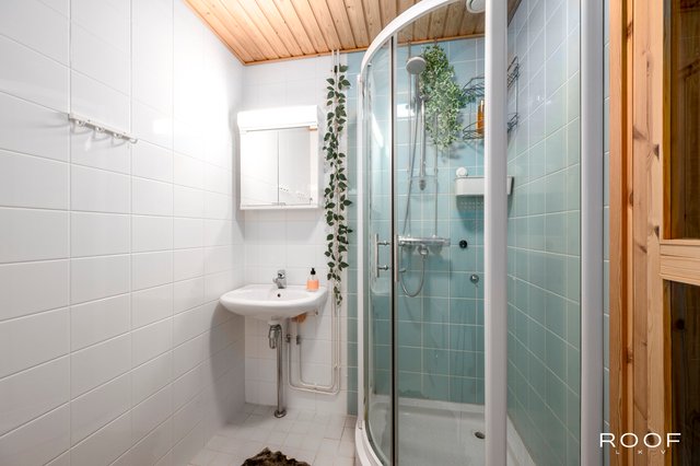 - Suihku, peilikaappi, suihkukaappi, ja pesuallas