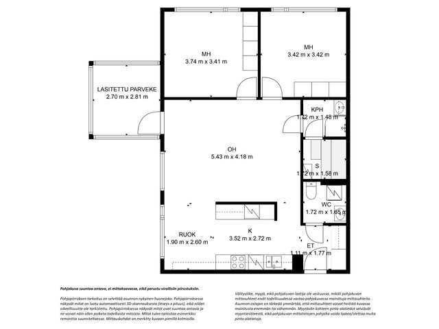 - Ei tarkistusmitattu. Pinta-ala voi siis olla edellä mainittua pienempi tai suurempi.