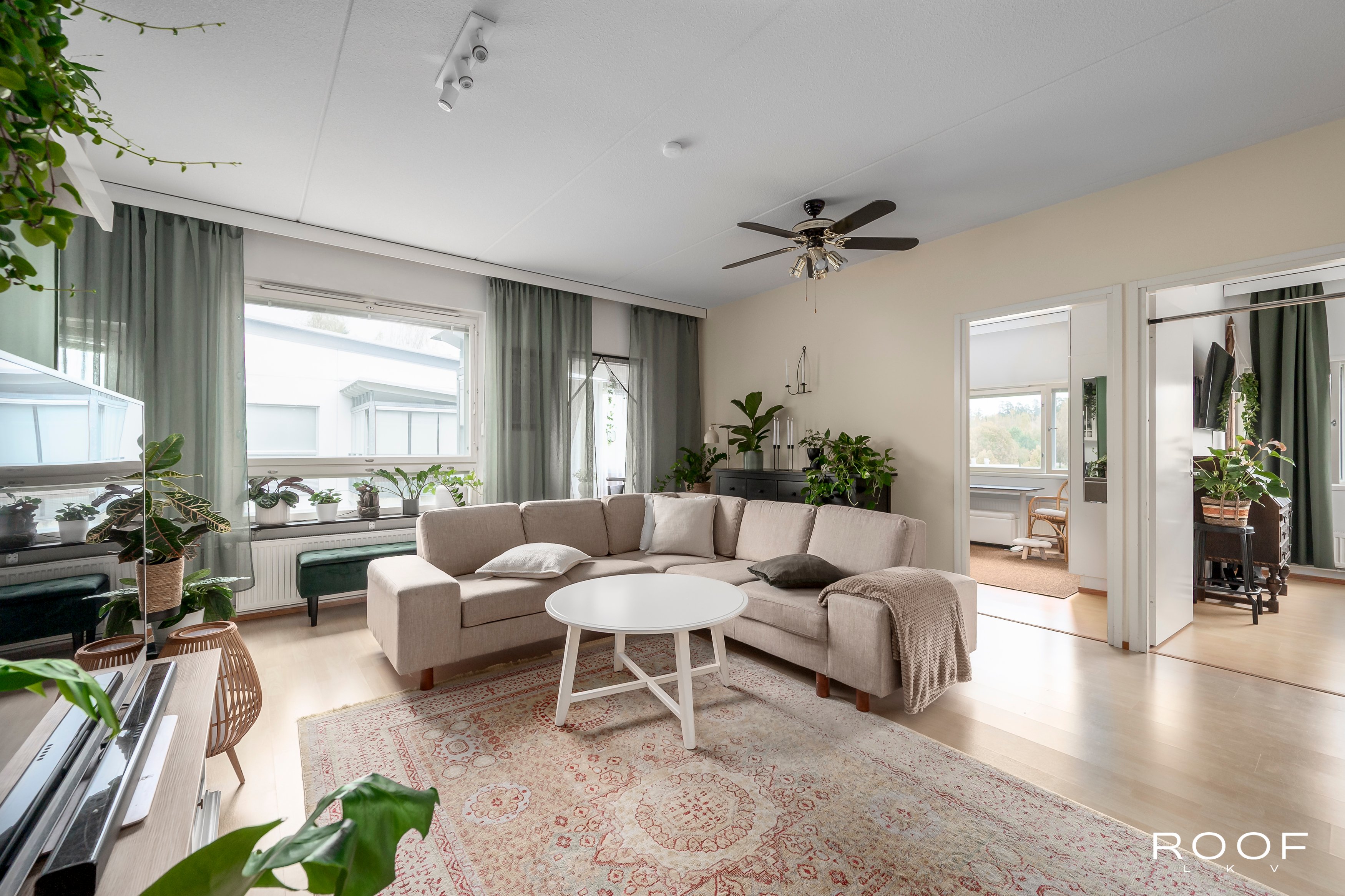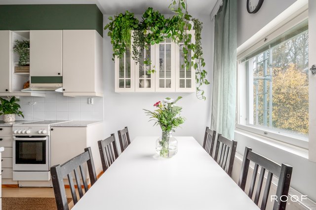 Fiksu pohjaratkaisu ja tilavat huoneet tekevät tästä kodista loistavan valinnan niin pariskunnalle kuin pienelle perheellekin. Avarat oleskelutilat ja hyvä säilytysratkaisut lisäävät asumismukavuutta. Olohuoneen kodikas tunnelma ja värimaailma luo aitoa kodin tuntua.