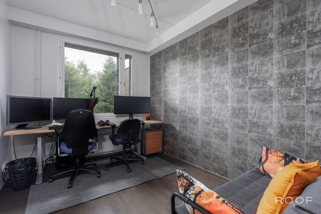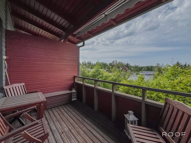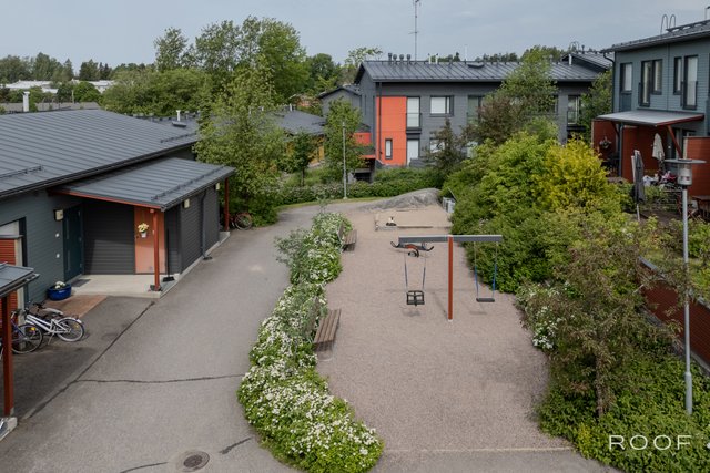 Taloyhtiö on valmistunut vuonna 2011 eikä tiedossa ole merkittäviä korjauksia. Yhtiö on lähes velaton, mikä tuo turvaa ostajalle. Asuntoa on pidetty erittäin hyvin ja se onkin erinomaisessa kunnossa. Asunnon 96,5m2 tarjoavat hyvät puitteet niin perheille kuin pariskunnillekin. Nykyisessä ratkaisussa asunnossa on kaksi makuuhuonetta, mutta yläkerran ruokailutilasta saa väliseinällä erotettua lisähuoneen tarvittaessa. Säilytystilat ovat erinomaiset sillä sisäänkäynnin yhteydessä on tilava kylmä varasto ja alakerrassa on lämmin varasto. Yläkerran parvekkeelta on avarat näkymät kattojen yli laaksoon. Omalla suojaisalla terassille on kiva viettää aikaa kesäisin grillaten. Yksi autopaikka kuuluu asunnolle, mutta mahdollisuus on saada myös toinen paikka.